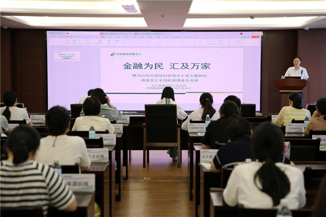 为助力涉外企业深化外汇政策理解,提升汇率风险管理能力,9月23日下午,中国邮政储蓄银行绍兴分行联合国家外汇管理局绍兴市分局(以下简称“外汇局”)成功举办“2025年经常项目贸易外汇收支便利化政策及汇率风险管理业务”专题宣讲会。本次培训面向全市重点涉外企业代表,通过政策解读与案例实操相结合的方式,为企业稳健经营注入“强心剂”。