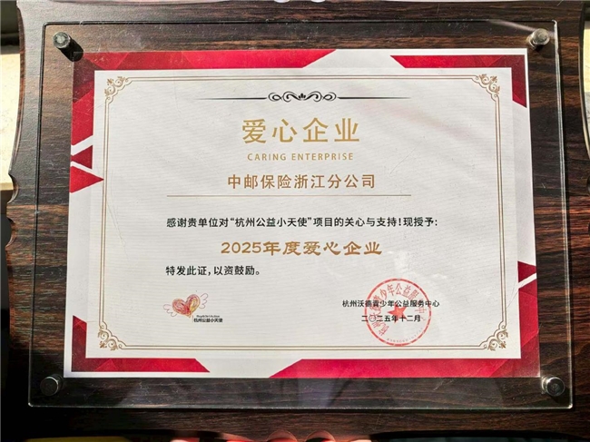 2026年3月,杭州沃德青少年公益服务中心二十周年庆典圆满举行。中邮保险浙江分公司凭借长期以来在公益事业上的坚定投入与积极践行,在本次庆典上再度获评公益“爱心单位奖”,实现该奖项连续三年蝉联,充分彰显了分公司在社会责任领域的持续作为与行业认可。